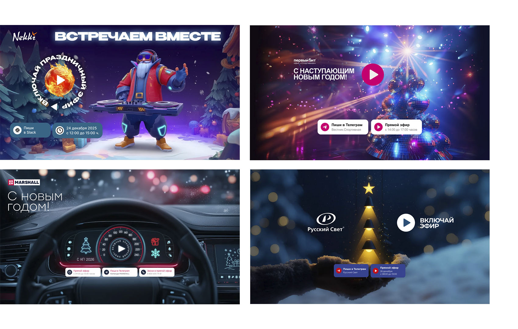 Три клиента пришли к нам повторно – за новогодним корпоративным радио. И это отдельный вызов: нельзя сделать «как в прошлом году». Нужно снова придумать концепцию так, чтобы сотрудник не услышал повторы, а компания получила ощущение новой истории. В таких проектах мы предлагали идеи сами: сквозные игры между часами, иное музыкальное направление, длинные интервью в формате подкастов, специальные рубрики, связанные с итогами года и внутренней жизнью команды.